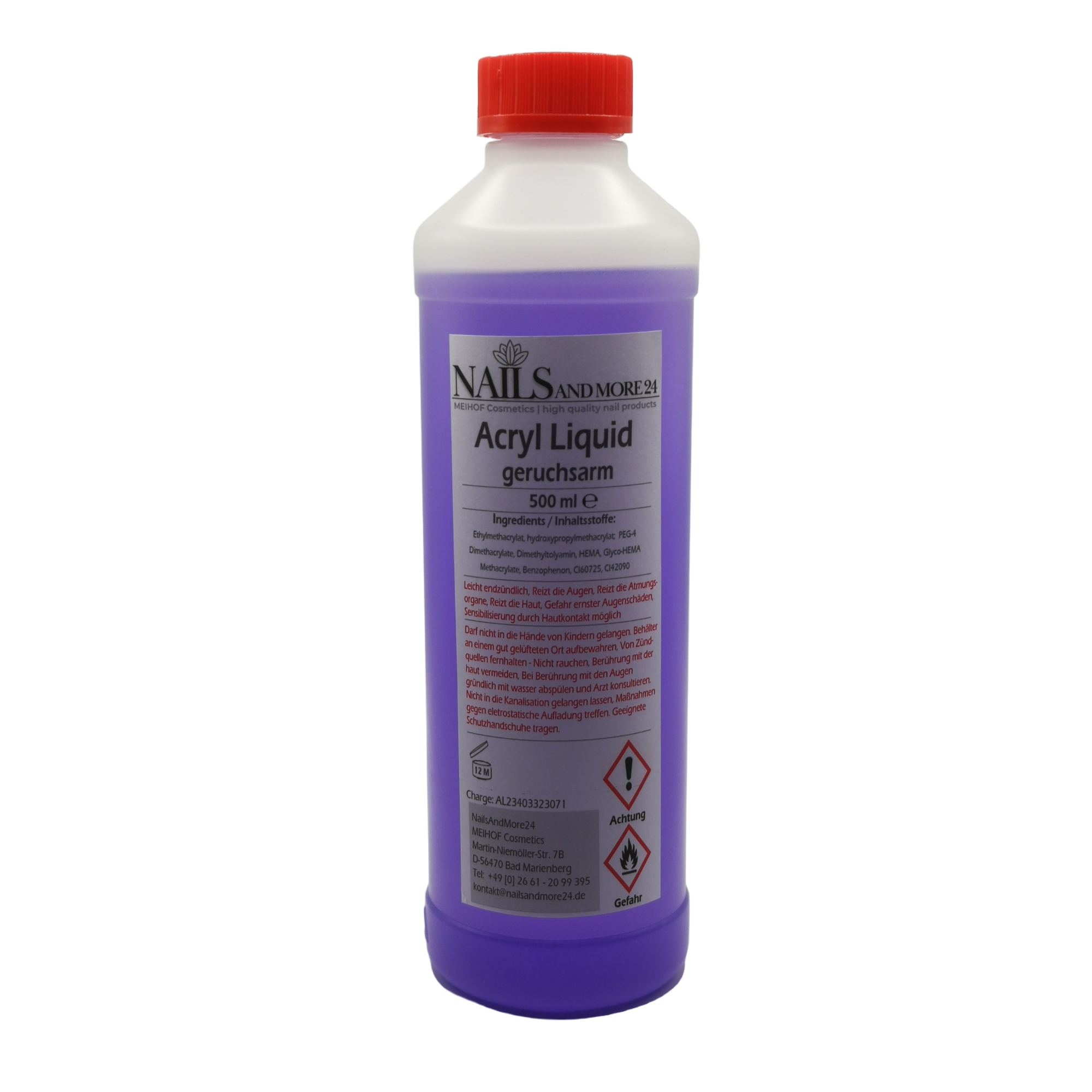 Unser NAM24 Acryl Liquid geruchsarm sorgt für gute Haftung und lange Haltbarkeit der Nagelmodellage, unser Produkt wurde mit Sun Blocker bzw. Gilb Stop angereichert