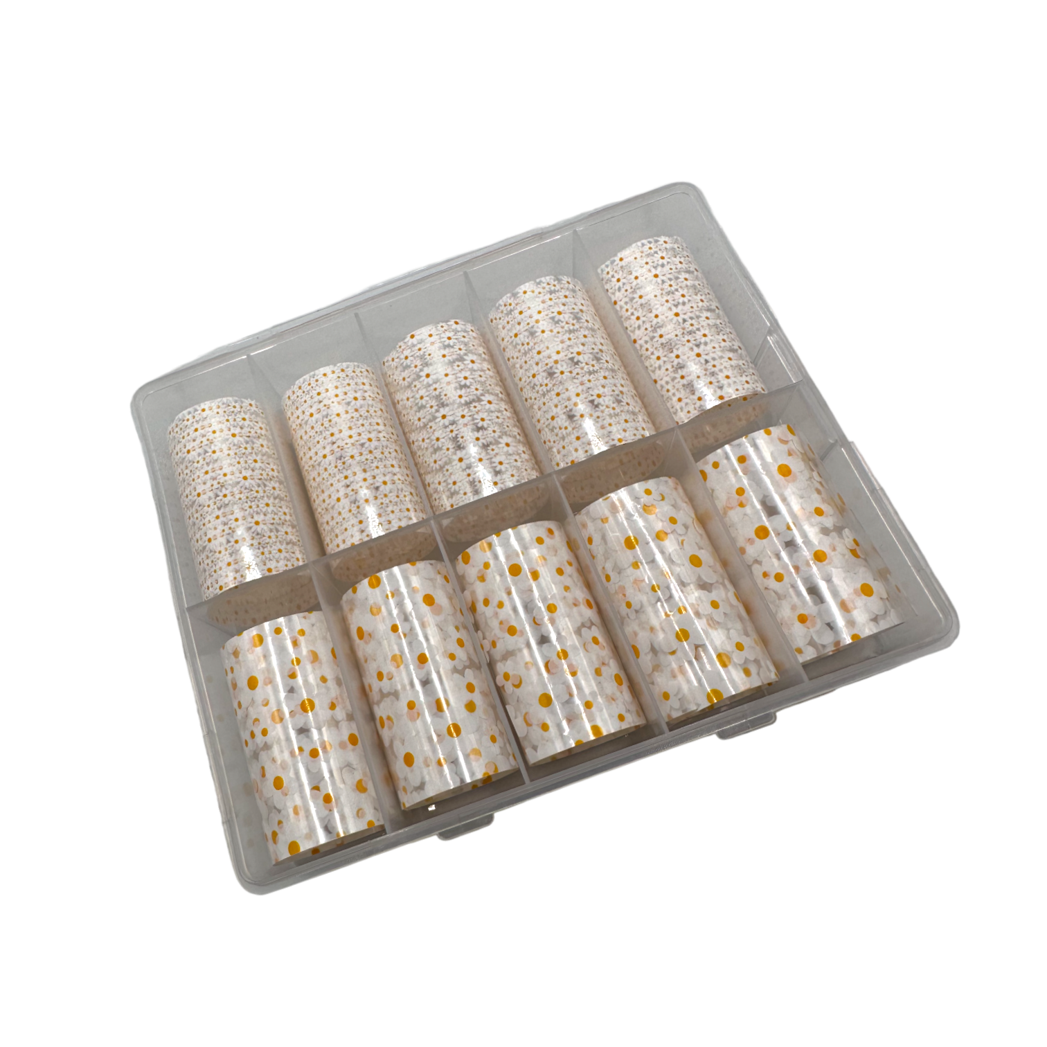 Mit dieser Nailart Folienbox lassen sich vielfältiges Nageldesign verwirklichen, ob als Motiv, Fullcover oder als French. durch die weiche flexible und strapazierfähige Eigenschaft dieser Folien lassen diese sich leicht von Anfänger und Profis verarbeiten.
