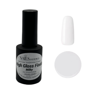 Unser neuer High Gloss Finish Milky ist das perfekte Finish für milchig Fingernägel. Das Finish wird zum Abschluss der Modellage dünn auf den Nagel aufgetragen und in 2 Minuten im UV oder LED-Gerät ausgehärtet.