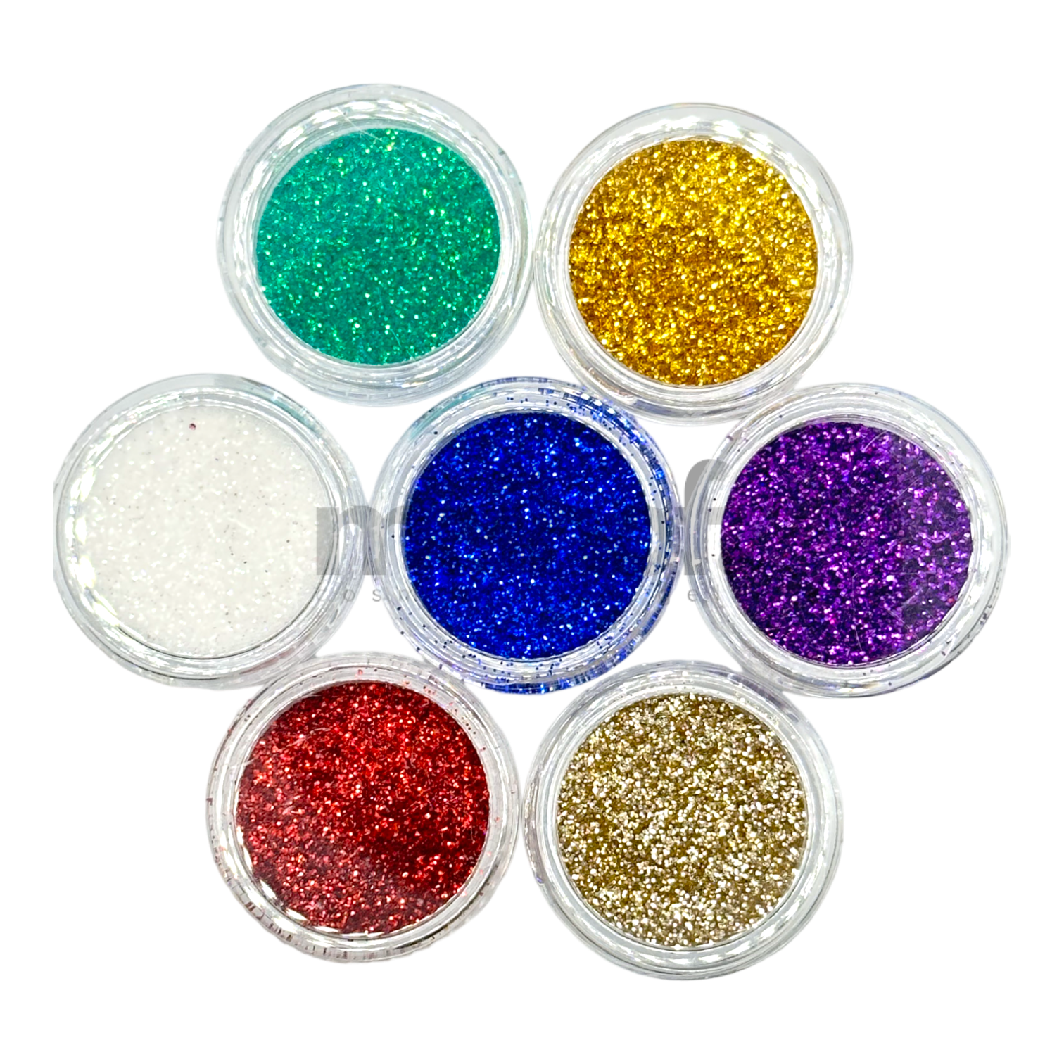 Set = 7 Döschen mit Glitter, Mix in unterschiedlicher Farbvariationen
