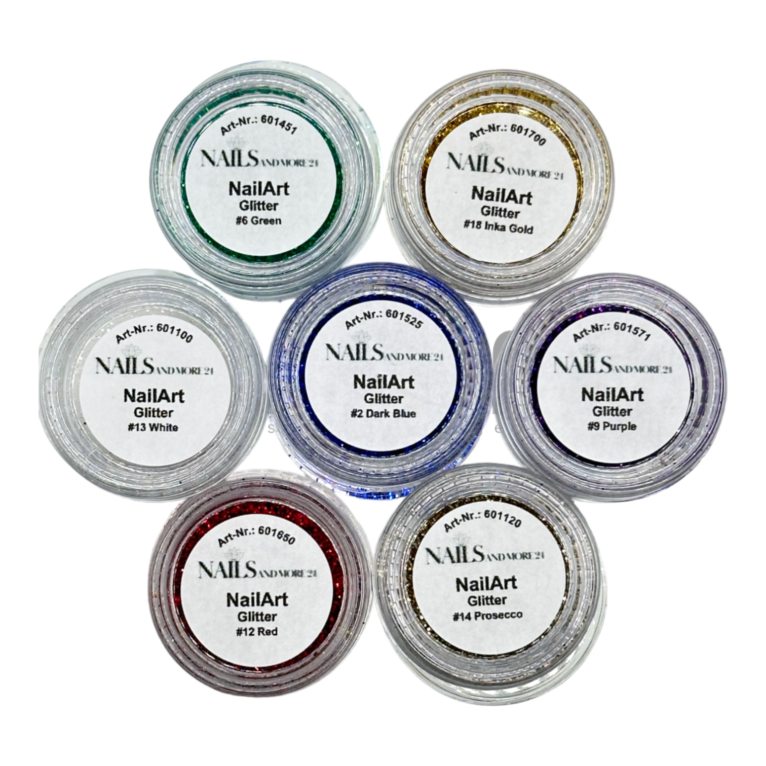 NAM24 Nailart Glitter Mix | Abverkauf 7-teilig - unterschiedlicher Farbvarianten