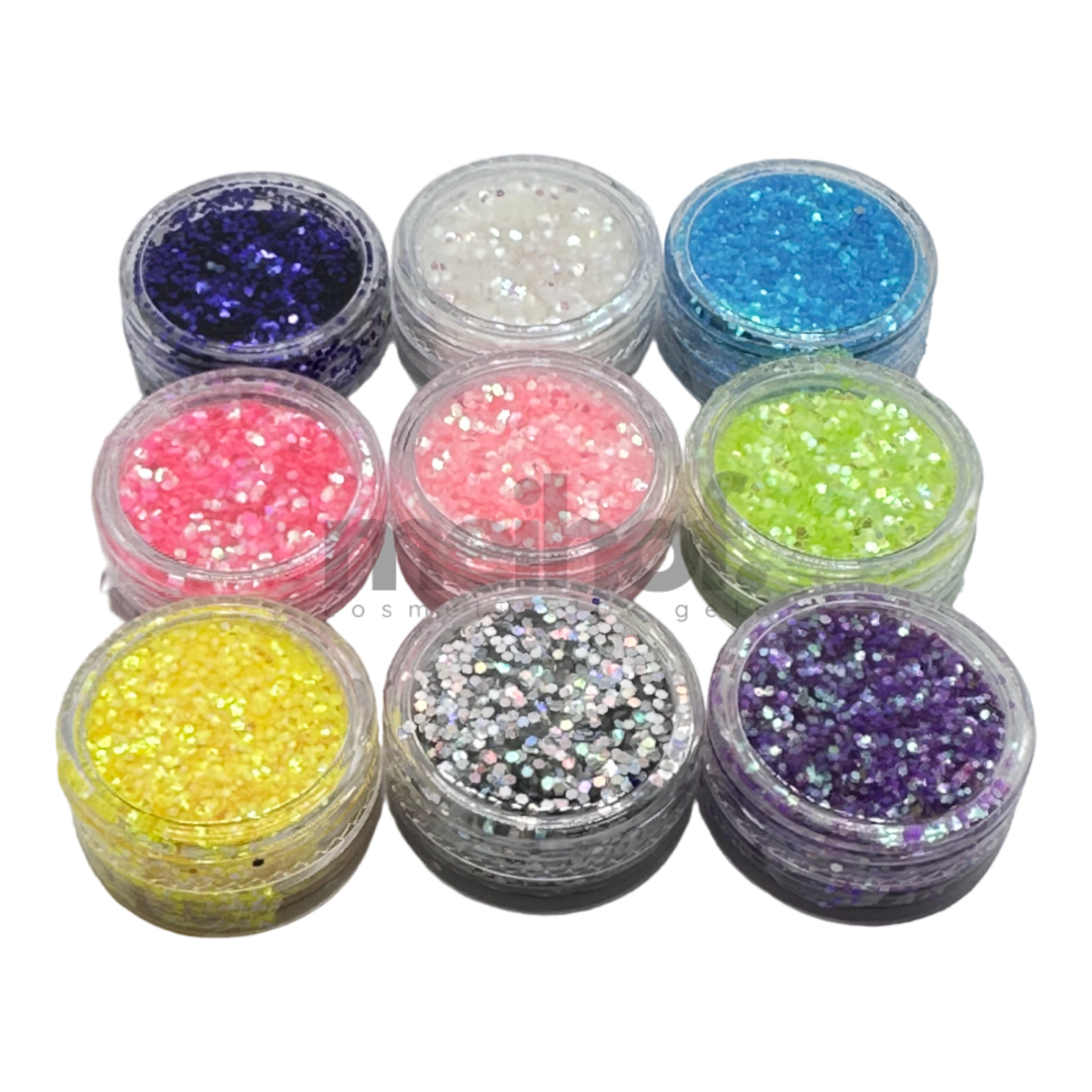 Set = 9 Döschen mit Glitter Pailetten Mix in unterschiedlicher Farbvariationen