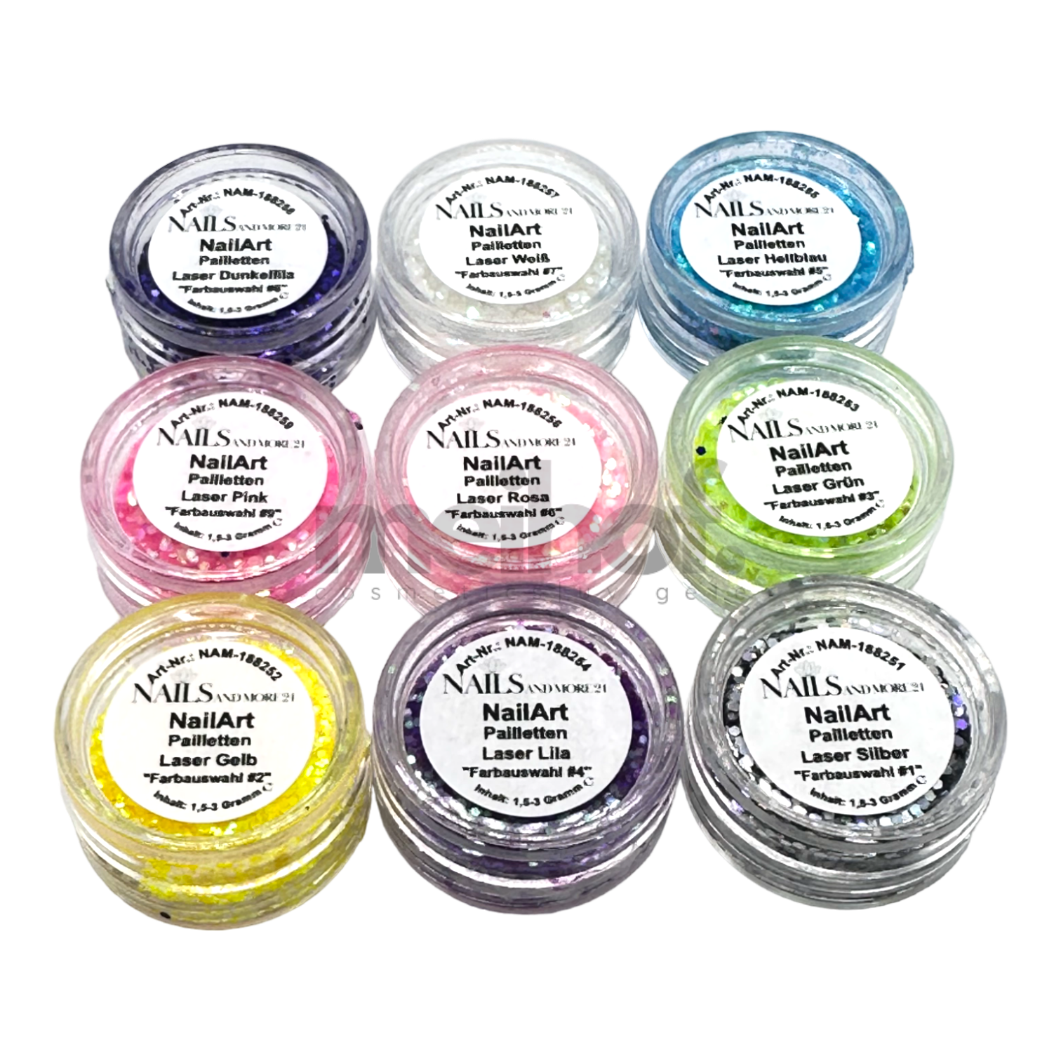 NAM24 Nailart Glitter Pailetten Laser | Mix Set 9-teilig - unterschiedlicher Farbvarianten
