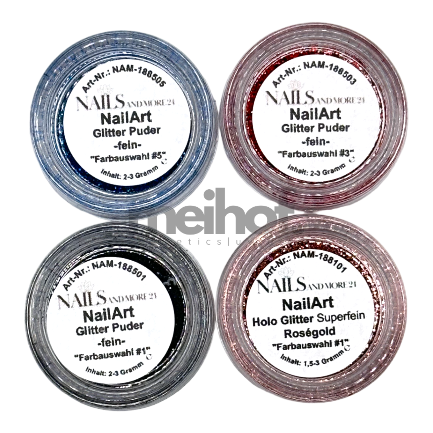 NAM24 Nailart Glitter Puder Mix | 4-teilig - unterschiedlicher Farbvarianten