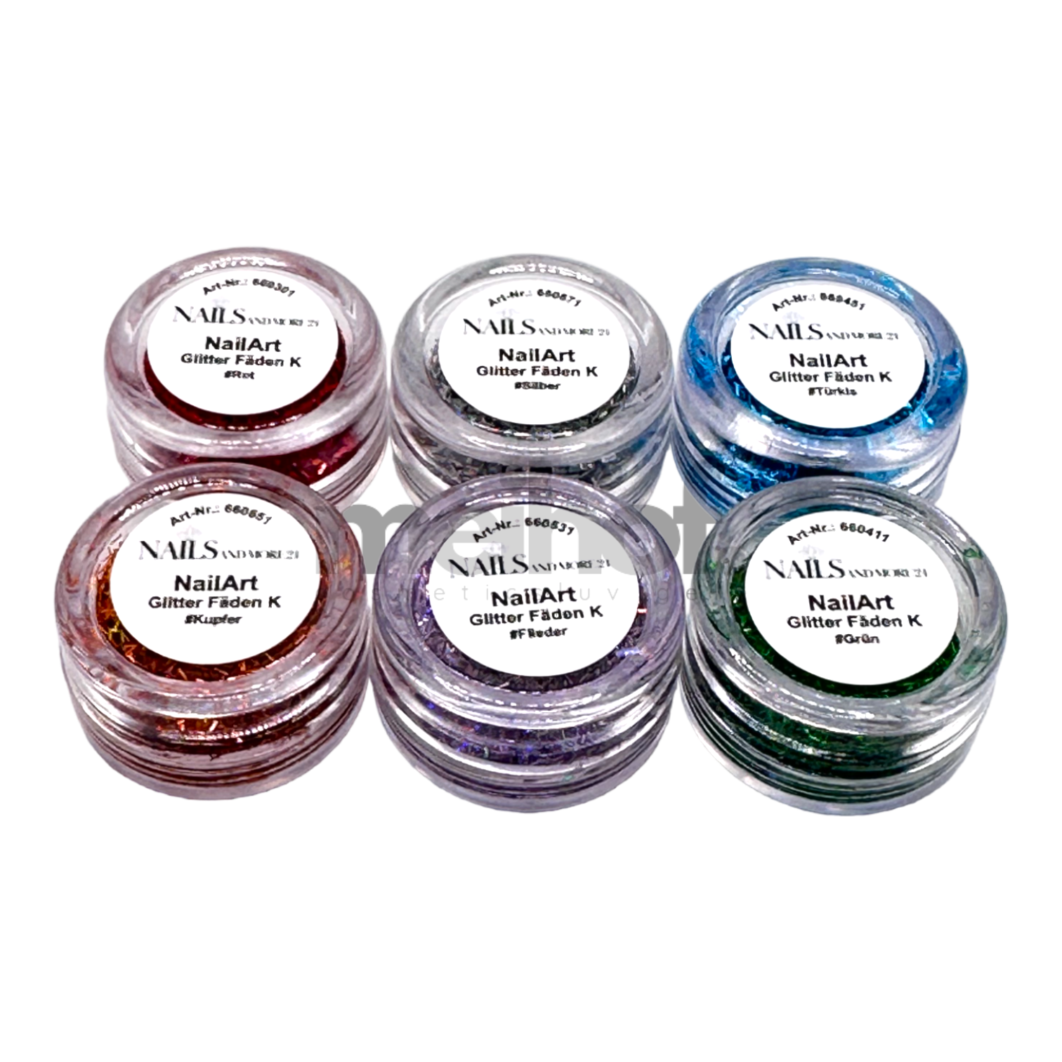 NAM24 Nailart kurze Glitter Fäden | Abverkauf Mix 6-teilig - unterschiedlicher Farbvarianten
