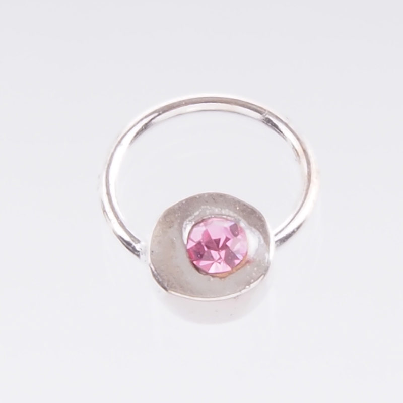 Piercing Ring Rund mit Stein Rosa 925 Sterling Silber