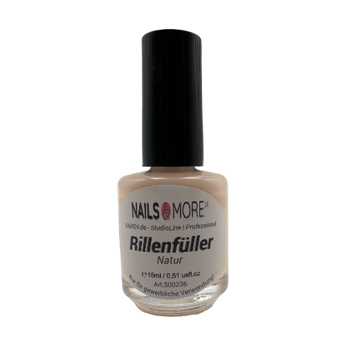 Unser Rillenfüller lässt unschöne Rillen bei Naturnägeln im Handumdrehen verschwinden. Ideal für Kunden, die mit Längs- und Querrillen oder Rissen in den Naturnägeln zu kämpfen haben. Dieses Produkt gleicht Unebenheiten aus und verleiht den Nägeln dank seines natürlichen Farbtons einen dezenten Glanz. Es kann auch als Unterlack verwendet werden, wenn die Nägel mit Nailart oder Nagellack verziert werden sollen. Achten Sie darauf, dass der Rillenfüller vollständig getrocknet ist, bevor Sie mit der weiteren Nagelarbeit fortfahren.