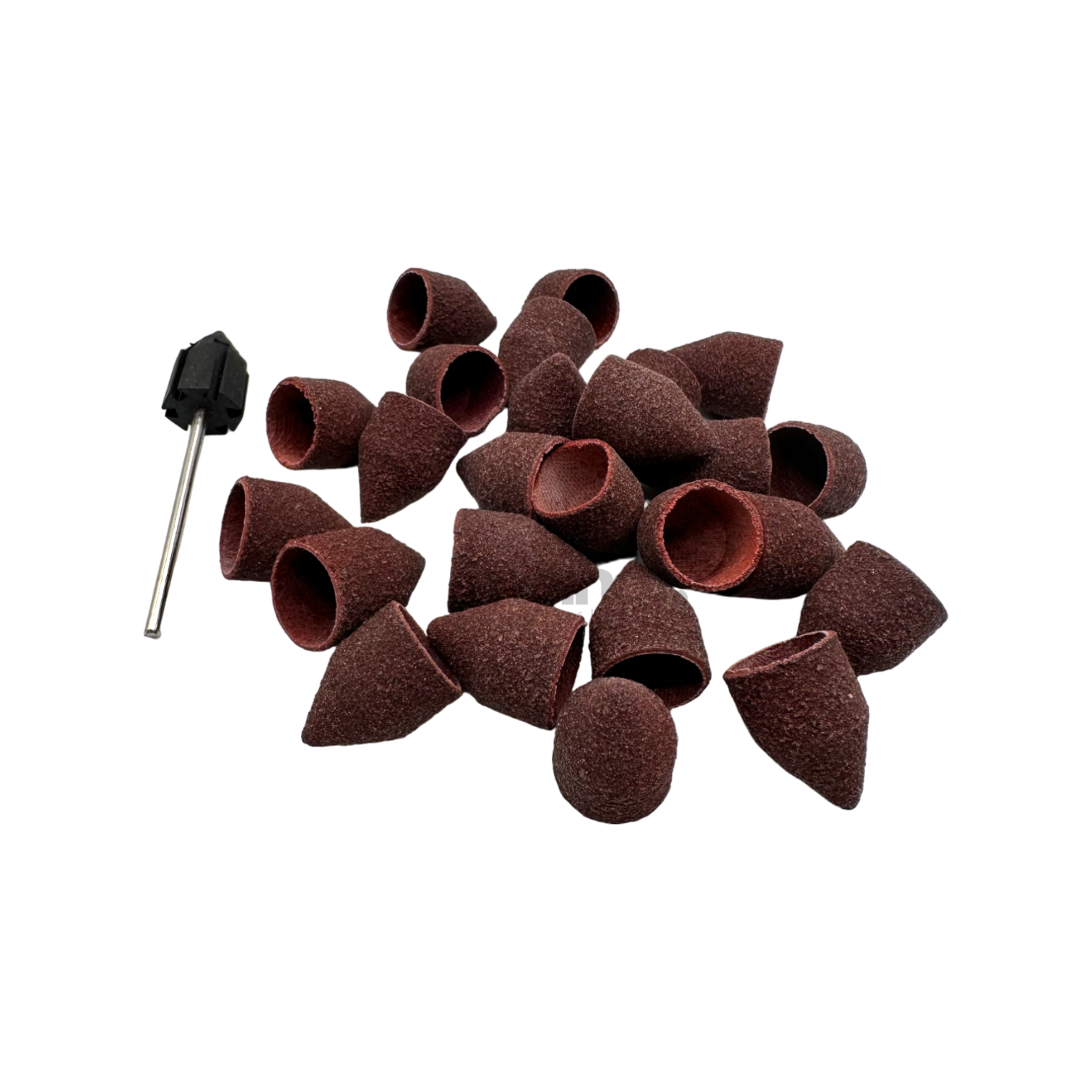 Starterset Premium Schleifkappen Spitz 13mm | #120 Körnung + Mandrel