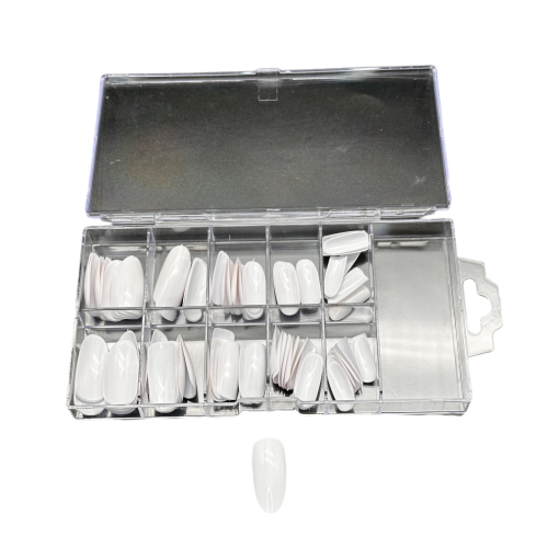 Unsere AN 100er Tipbox mit Tips in Stiletto Form verlängert Ihre Nägel bereits in der perfekten Form, für eine vereinfachte Modellage. Die vorgeformten Tips werden einfach mit Gel auf dem vorbereiteten Naturnagel angebracht und geben anschließend eine optimale Verlängerung ohne weiteres Feilarbeiten.